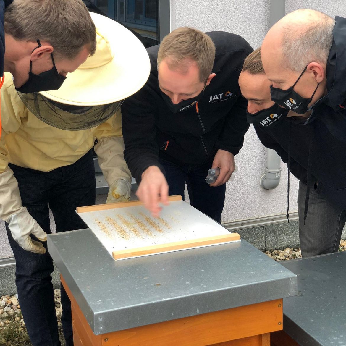 Das Insektensterben schreitet immer weiter voran, Ursachen dafür sind unter anderem der Klimawandel und der vermehrte Einsatz von Pestiziden. In den errichteten Bienenkästen auf den begrünten Dachflächen der JAT fühlen sich die kleinen Präzisionsliebhaber wohl und heimisch. JAT Kollegen reinigen fürsorglich ihre Behausung und versorgen die 80.000 kleinen Lebewesen regelmäßig mit Trinkwasser und steuern so einen wertvollen Beitrag zur Förderung der Artenvielfalt bei.