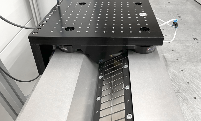 Durch die 30° Neigung des eisenbehafteten Motors werden Vorspannmechaniken eingespart. Außerdem ist die Achse durch die Lagerung unempfindlich gegenüber thermischen Klemmen. Zusammenfassend, sie ist ein kostengünstiges Einstiegsmodell in die Hochpräzision.