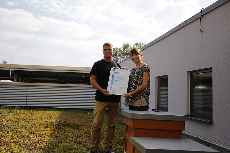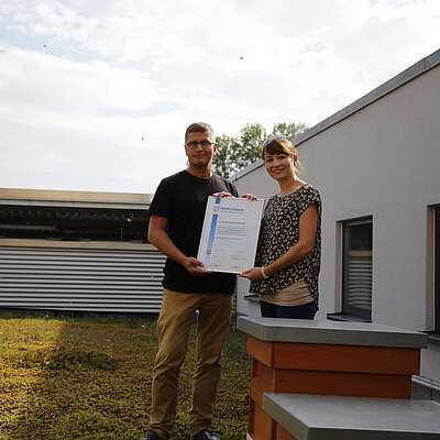 Bereits zum zweiten Mal haben wir uns für das "Nachhaltigkeitsabkommen Thüringen" qualifiziert und erhielten von Stefanie Kreißl vom Thüringer Ministerium für Umwelt, Energie und Naturschutz die erneute Urkunde. Vielen Dank, wir freuen uns sehr. Nachhaltigkeit ist ein fester Bestandteil unserer Unternehmenskultur. Ob unsere summenden Untermieter, Stromversorgung der Kaffeemaschine oder CO2 neutraler Betrieb unseres Technologiekomplexes, wir engagieren uns ganz bewusst mit vielen freiwilligen großen und kleinen Maßnahmen zur Energieeinsparung und zur Ressourcenschonung.