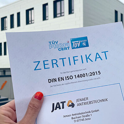 Nach dem umfangreichen Aufbau des Umweltmanagementsystems wurden wir im Mai 2021 erstmalig nach der internationalen Norm ISO 14001 zertifiziert. Wir unterstreichen mit der Zertifizierung unseren Nachhaltigkeitsgedanken und verpflichten uns, kontinuierlich den Schutz der Umwelt zu verbessern.