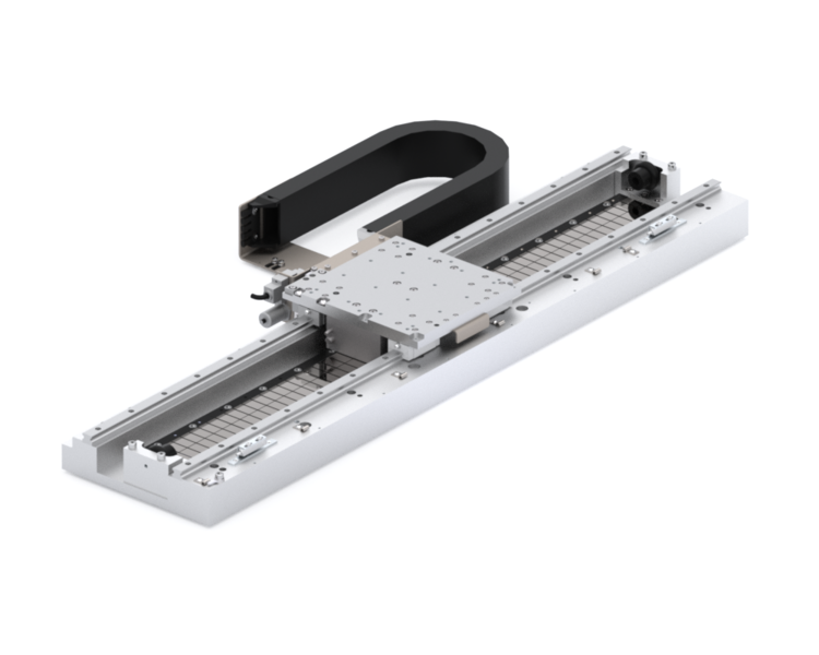 Die Linearmotorachse basiert auf einem eisenbehafteten Linearmotor. Ausgestattet mit exakt abgestimmten Antriebskomponenten (Servomotor & Servoverstärker) ist die Achse für lineare Bewegungen, die eine hohe Dynamik bei großen Dauerkräften verlangen, prädestiniert. Je nach Applikationsanforderung stehen verschiedenste Hübe und Optionen, z.B. vielfältige Feldbusschnittstellen, Encodertypen und Kabellängen zur Verfügung.